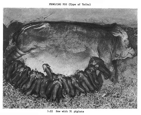Cerda Taihu con 31 lechones (Livestok breeds of